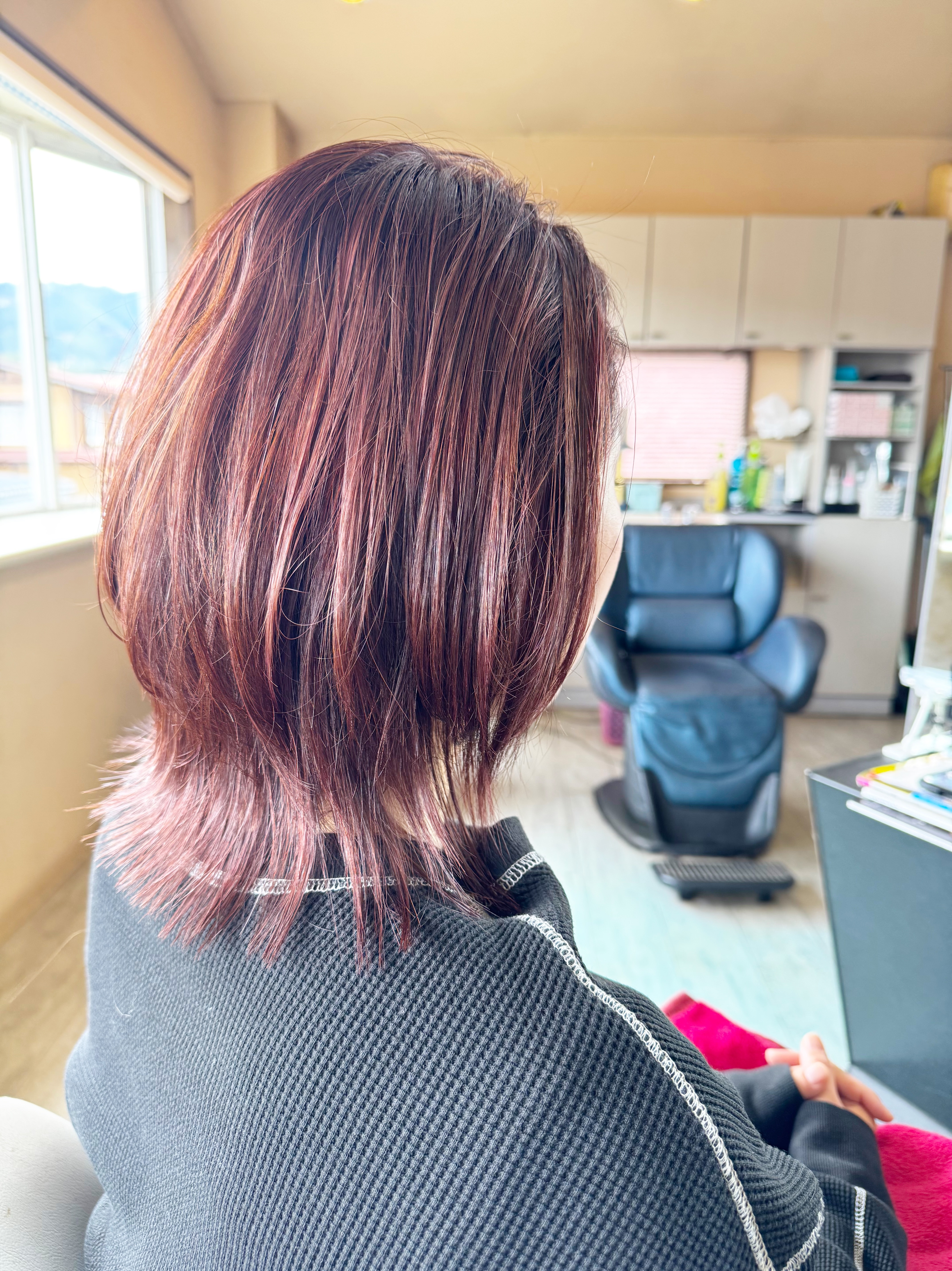 春らしいライトピンクに染めました。